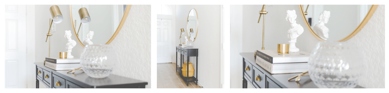 That being said, I really do enjoy the entrance, and where I am going with it. Since I took the original images, I have already made a few changes – I removed the brass lantern & the large candle, and I also swapped the vase & lamp – as seen throughout in the after-after. I definitely prefer the after-after so far, – let me know in the comments which you prefer.