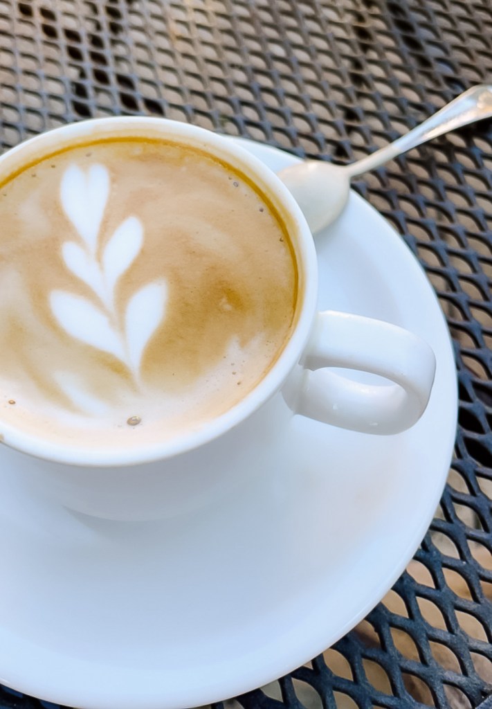 Couple the courtyard scene, the coffee, and 9 years of nostalgia, and my weekend ritual is just that – a ritual. From first walking into the café – to greeting the barista’s behind the bar – to then being asked if we want our usuals – to sitting outside in the pleasant temps under the dappled shade – to inhaling the aromas of the espresso roast – to finally taking the first sip. Yeah, it’s totally mindful meditation!